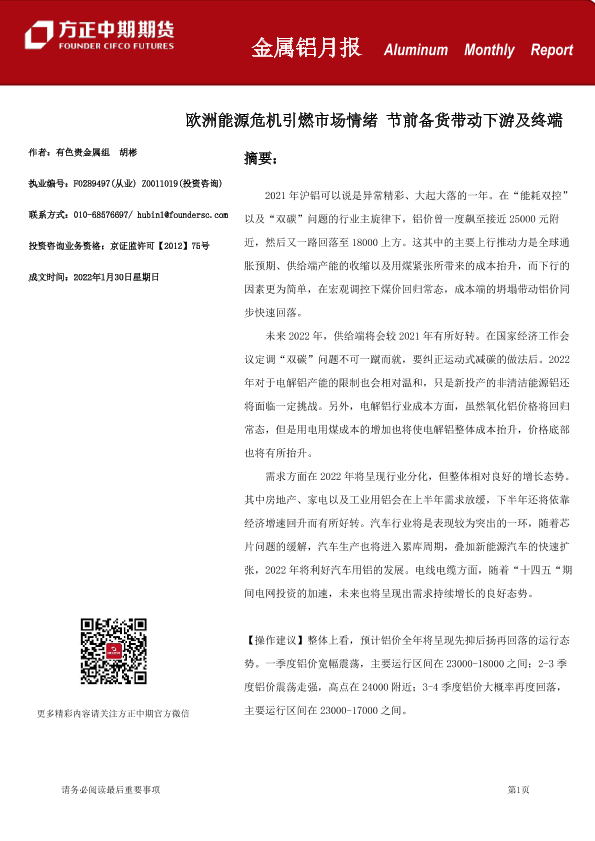 【方正中期期货】【20220130】金属铝月报-20220130-32页