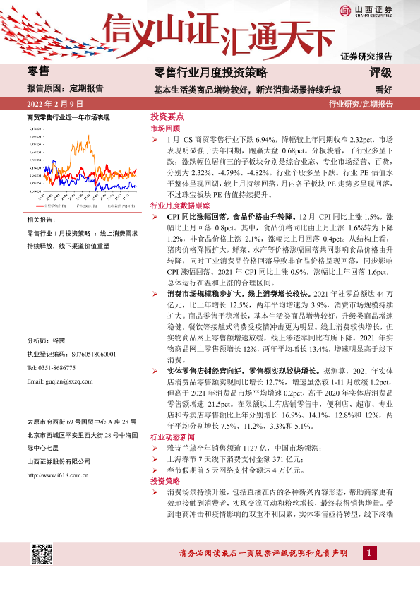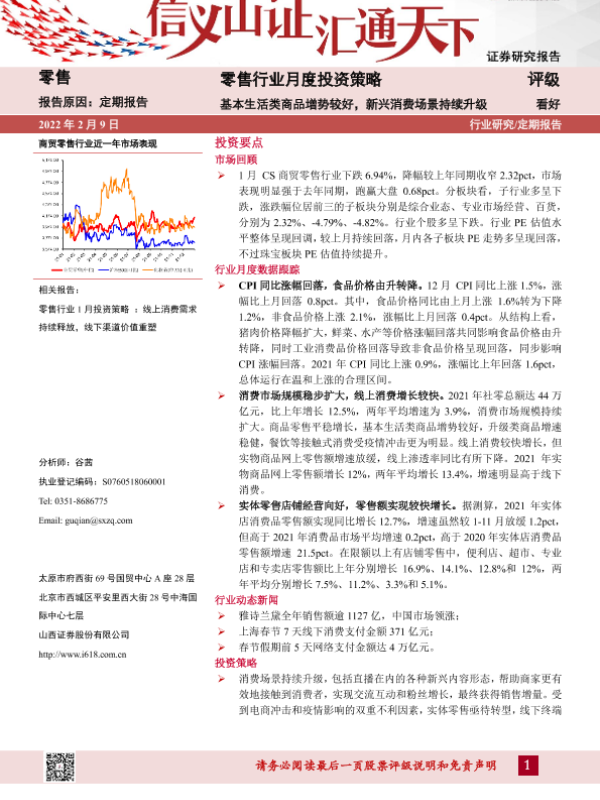 【山西证券】【20220209】零售行业月度投资策略:基本生活类商品增势较好,新兴消费场景持续升级-17页