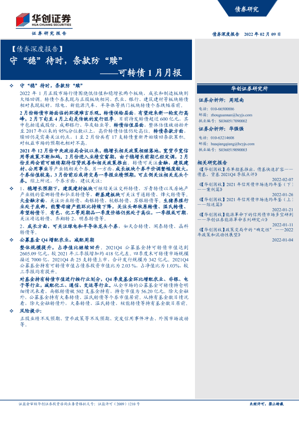 【华创证券】【20220209】可转债1月月报:守“稳”待时,条款防“赎”-22页