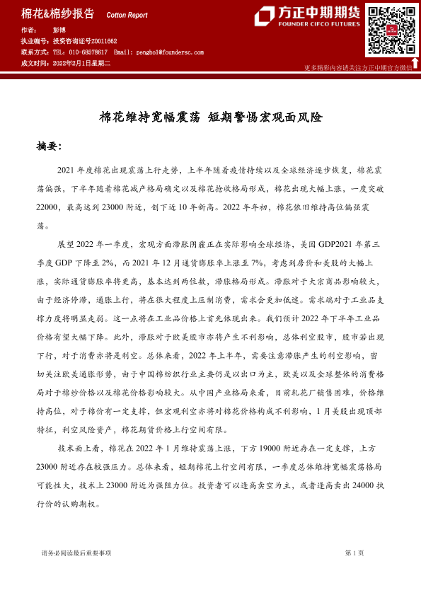 【方正中期期货】【20220201】棉花&棉纱报告-42页