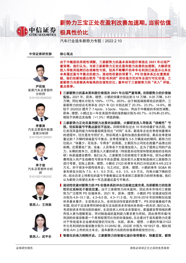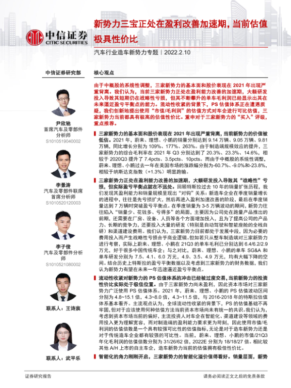 【中信证券】【20220210】汽车行业造车新势力专题:新势力三宝正处在盈利改善加速期,当前估值极具性价比-20页