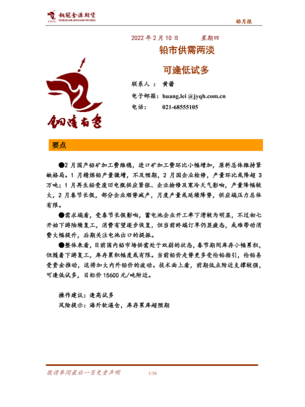 【铜冠金源期货】【20220210】铅月报:铅市供需两淡,可逢低试多-16页