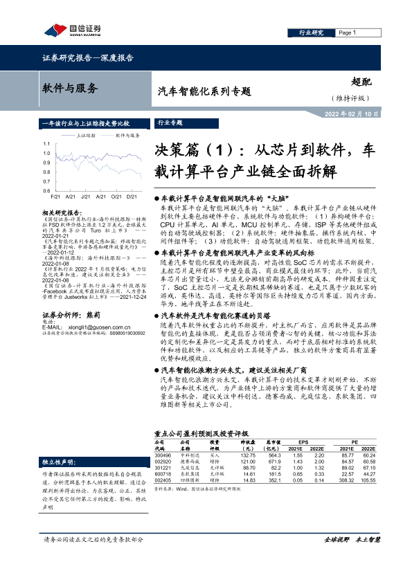 【国信证券】【20220210】软件与服务行业汽车智能化系列专题:决策篇(1),从芯片到软件,车载计算平台产业链全面拆解-46页