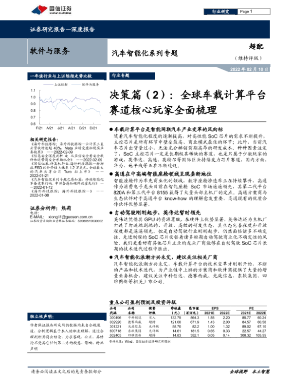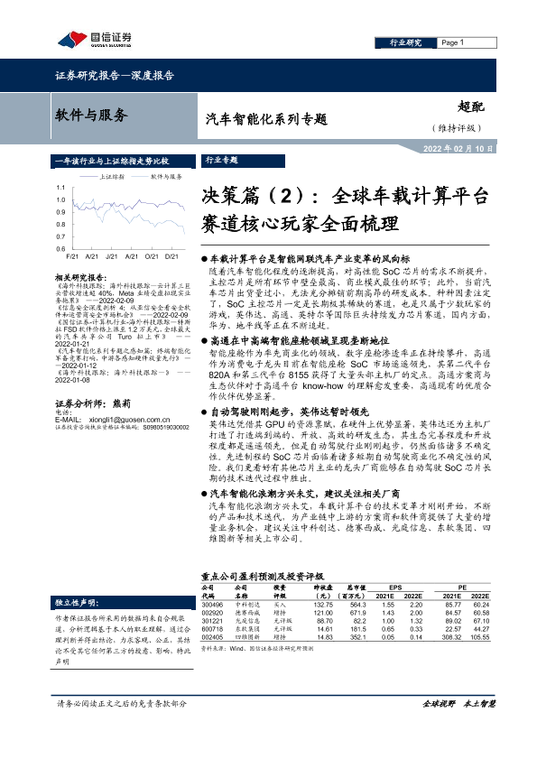 【国信证券】【20220210】软件与服务行业汽车智能化系列专题:决策篇(2),全球车载计算平台赛道核心玩家全面梳理-50页