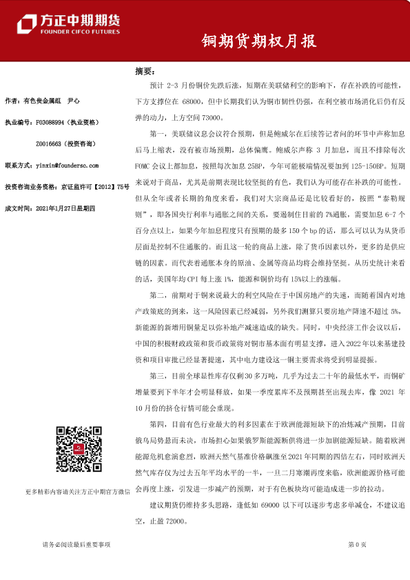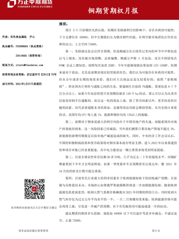 【方正中期期货】【20220127】铜期货期权月报-43页