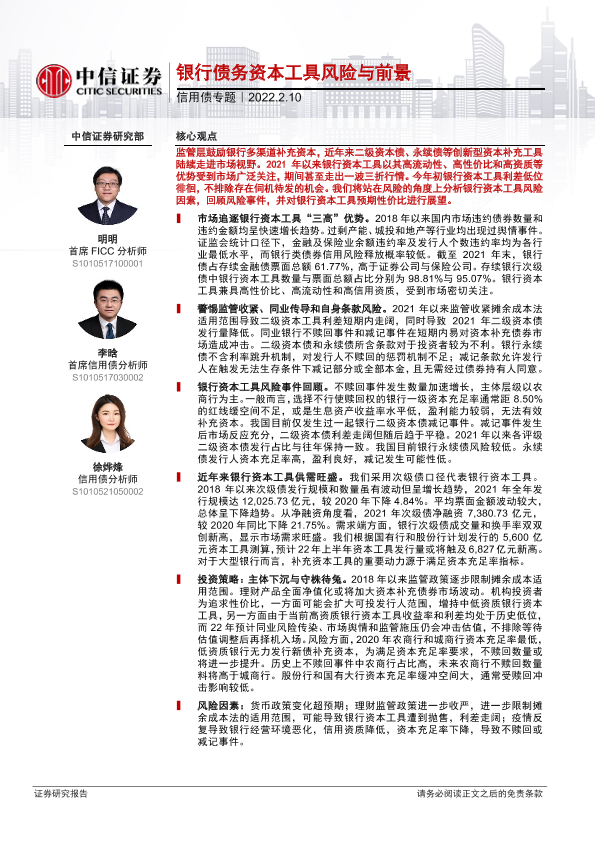 【中信证券】【20220210】信用债专题:银行债务资本工具风险与前景-36页