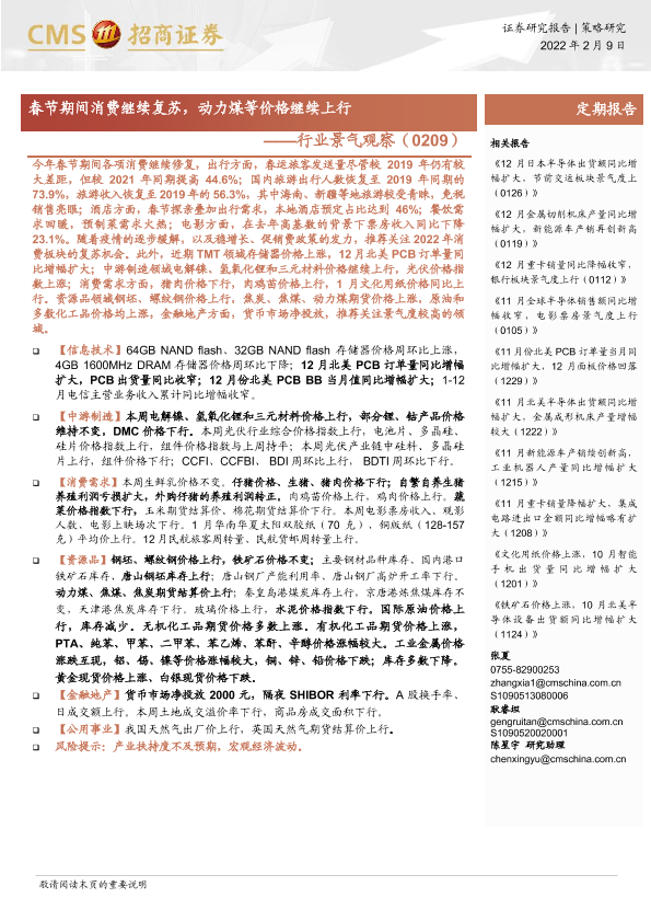 【海通证券】【20220209】行业景气观察:春节期间消费继续复苏,动力煤等价格继续上行-30页