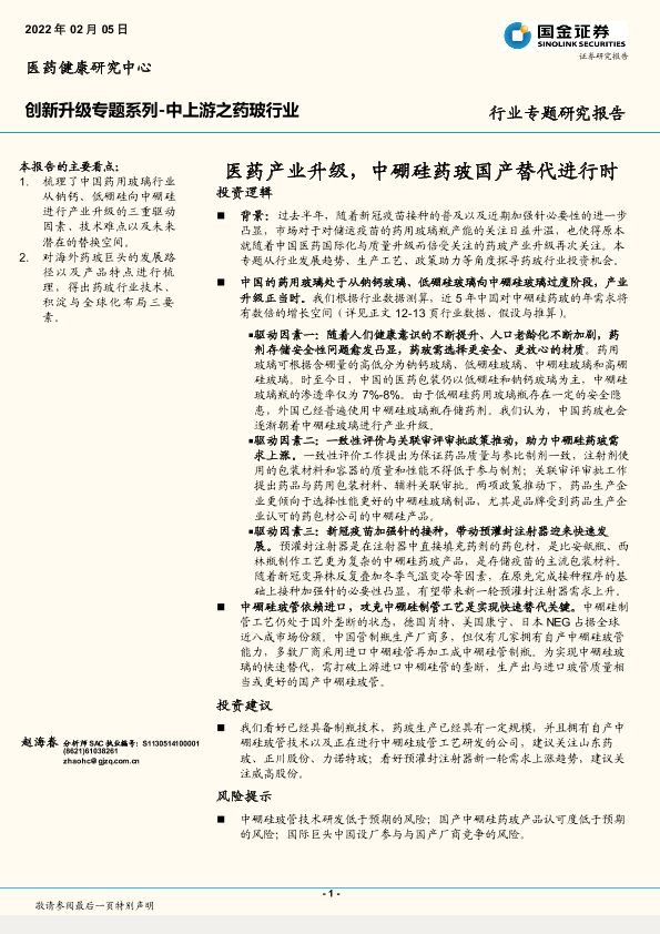 【国金证券】【20220205】医药健康行业创新升级专题系列-中上游之药玻行业:医药产业升级,中硼硅药玻国产替代进行时-23页