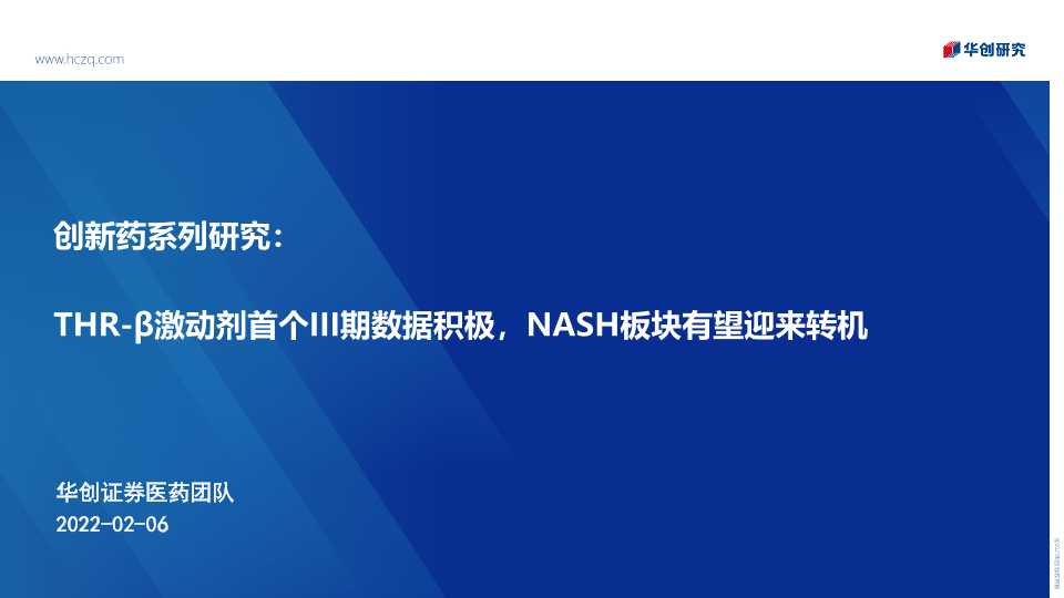 【华创证券】【20220206】医药行业创新药系列研究:THR-β激动剂首个III期数据积极,NASH板块有望迎来转机-22页
