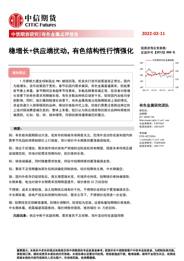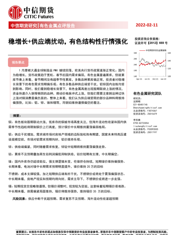 【中信期货】【20220211】有色金属点评报告:稳增长+供应端扰动,有色结构性行情强化-18页