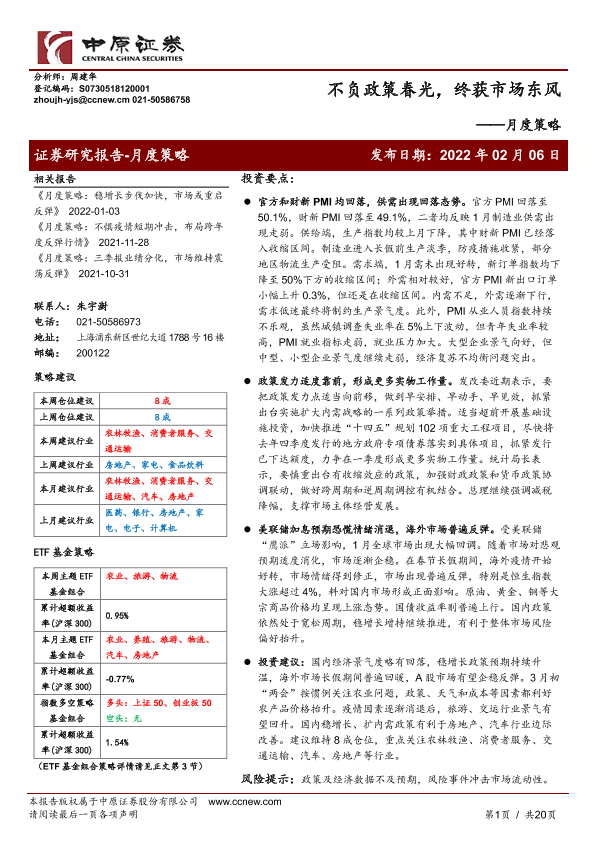 【中原证券】【20220206】不负政策春光,终获市场东风-20页