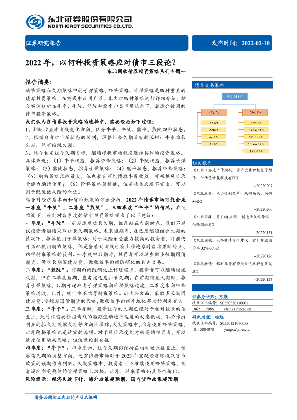 【东北证券】【20220210】债券投资策略系列专题一:2022年,以何种投资策略应对债市三段论?-42页
