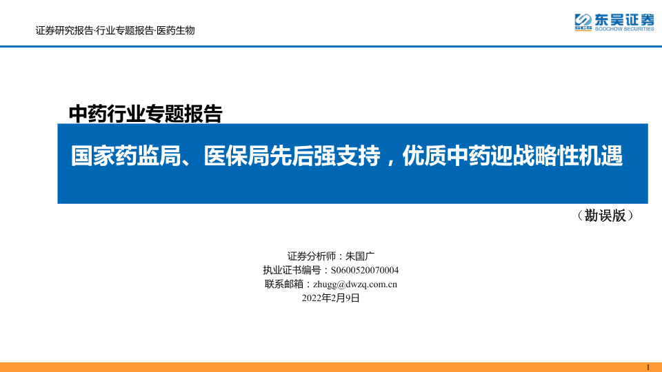 【东吴证券】【20220209】中药行业专题报告:国家药监局、医保局先后强支持,优质中药迎战略性机遇(勘误版)-37页
