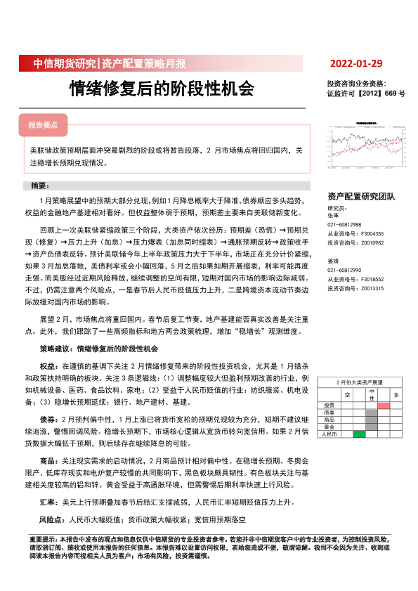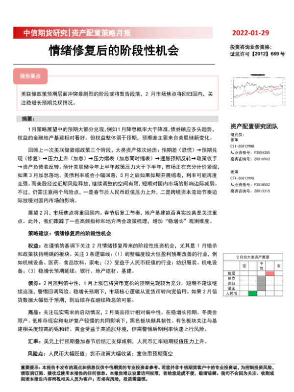 【中信期货】【20220129】资产配置策略月报:情绪修复后的阶段性机会-30页