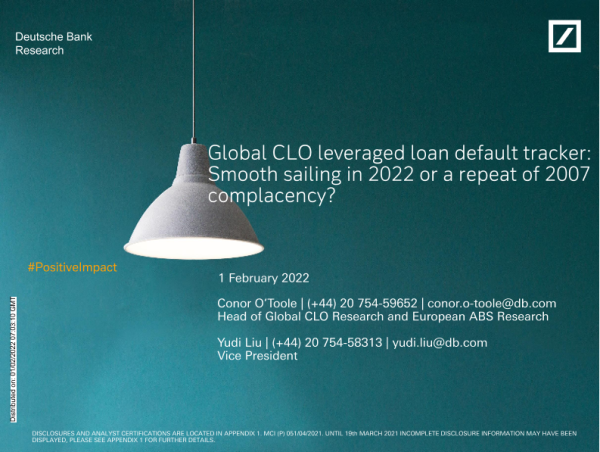 【德银】【20220201】全球CLO杠杆贷款违约追踪器:2022年是一帆风顺,还是重现2007年的自满-26页
