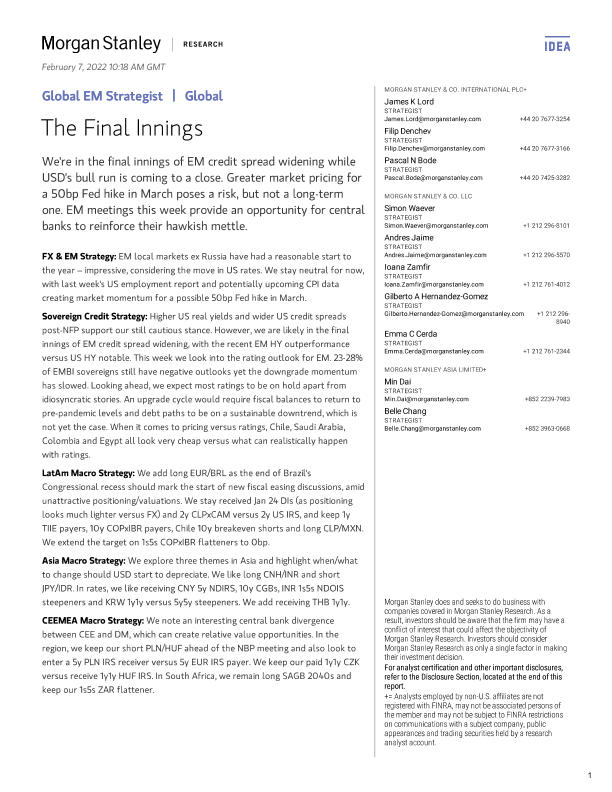 【Morgan Stanley】【20220207】新兴市场投资策略-最后一局-37页