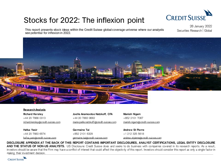 【瑞信(Credit Suisse)】【20220128】瑞信-全球投资策略-2022年股市:拐点-54页