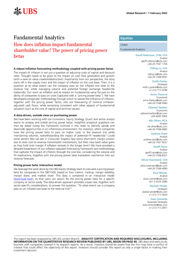 【瑞银】【20220201】瑞银-全球投资策略-基本面分析:通货膨胀如何影响基本面股东价值-45页