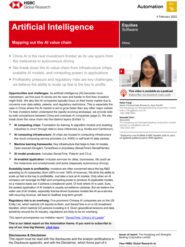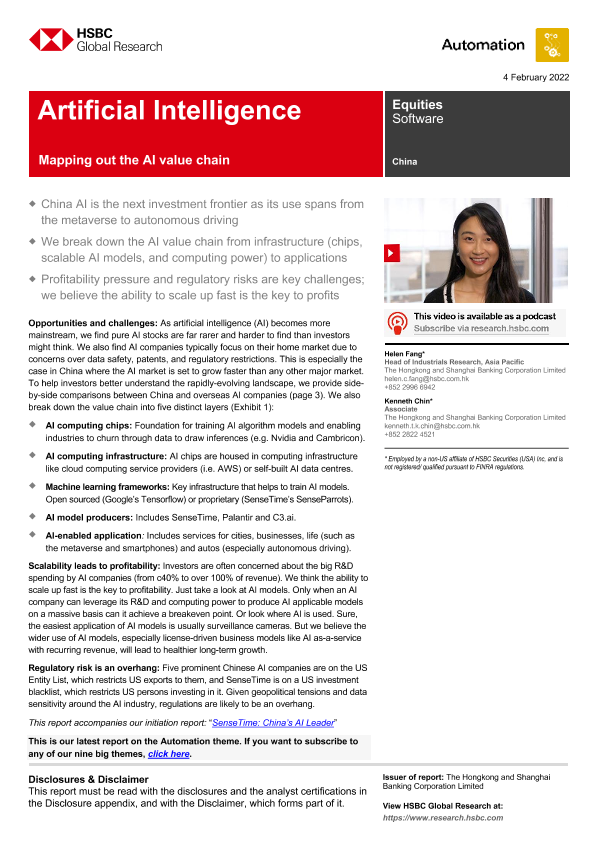 【The Hongkong and Shanghai Banking Corporation Limited】【20220204】HSBC-中国软件行业-人工智能:规划人工智能价值链-38页