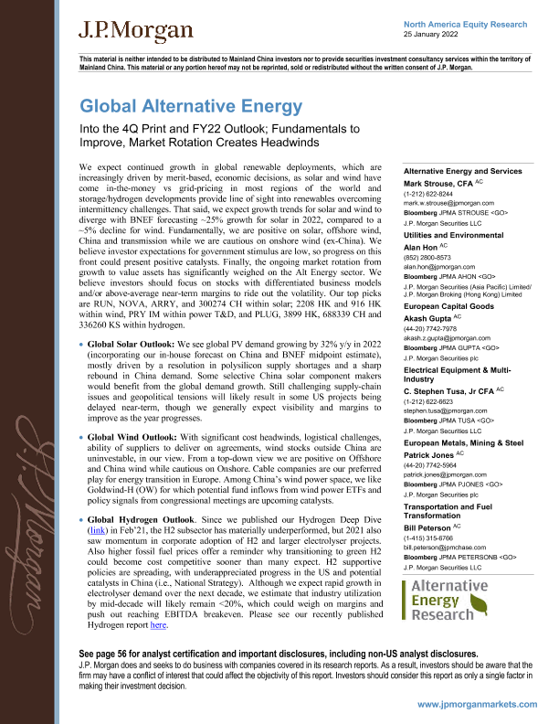 【J.P. Morgan】【20220125】美股替代能源行业-第四季度回顾及2022财年展望;基本面正在改善,市场轮换产生阻力-60页