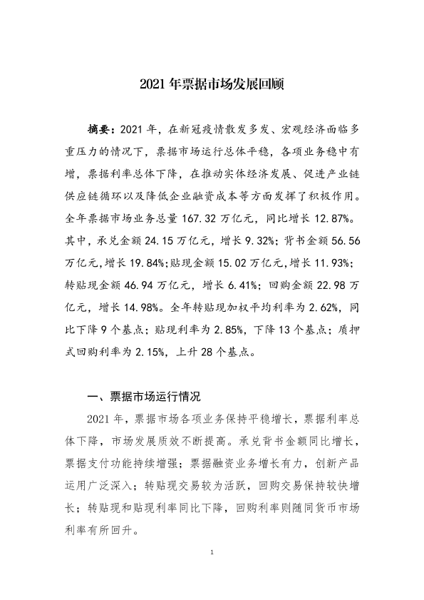 【上海票据交易所】【2021】2021年票据市场发展回顾-13页