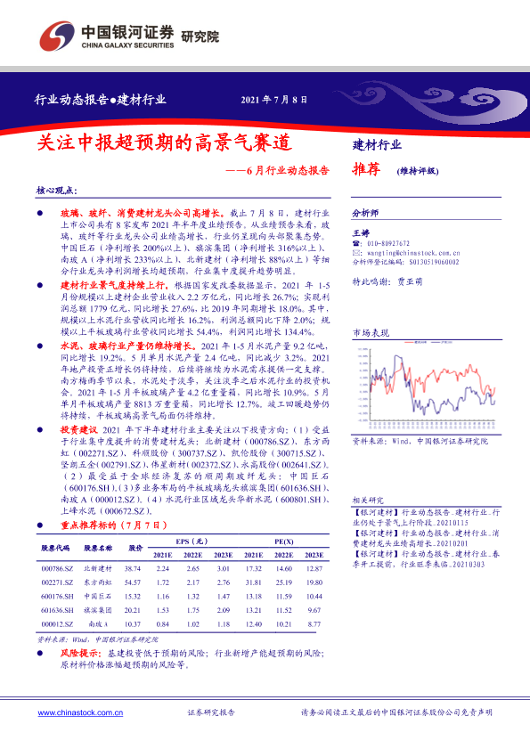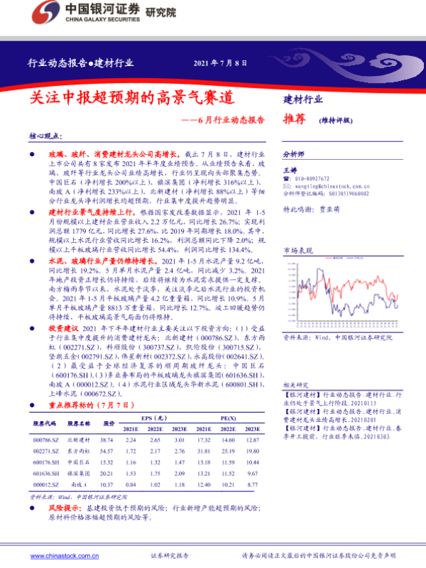 【银河证券】【20210708】建材行业6月行业动态报告:关注中报超预期的高景气赛道-15页