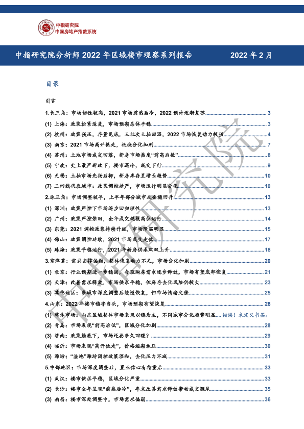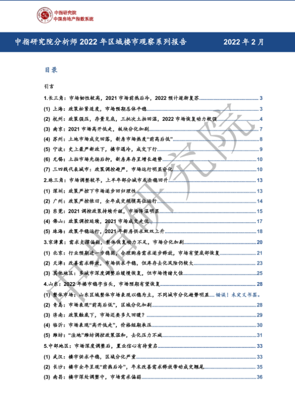 【中指研究院】【2022】2022年区域楼市观察系列报告-60页