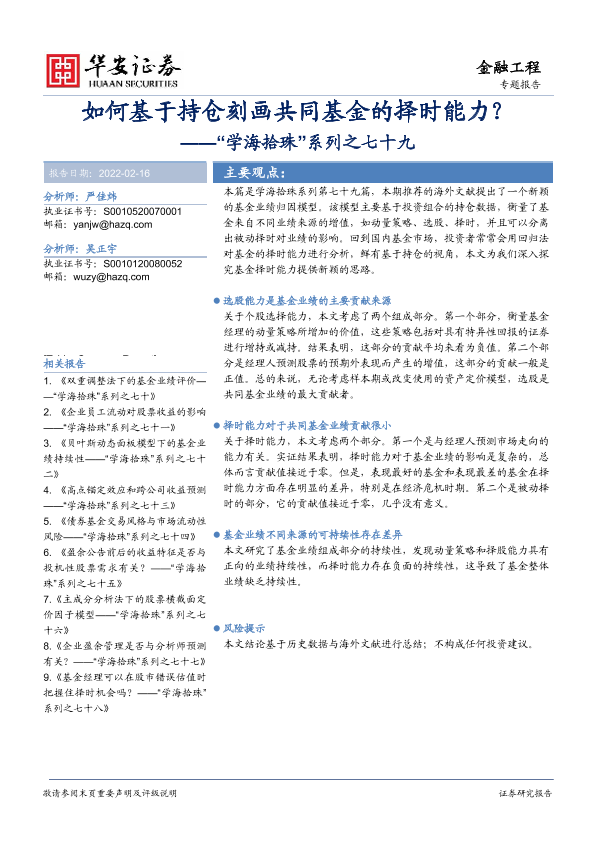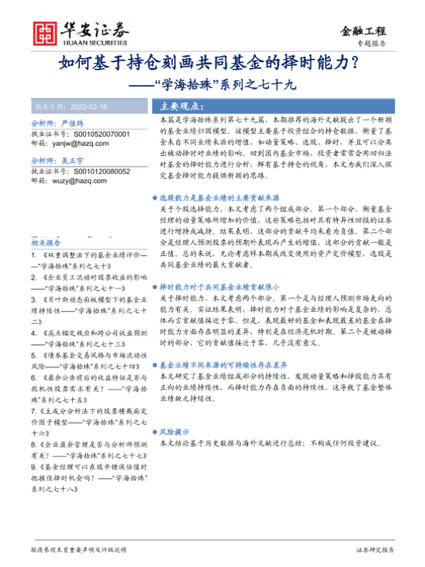 【华安证券】【20220216】如何基于持仓刻画共同基金的择时能力?-18页