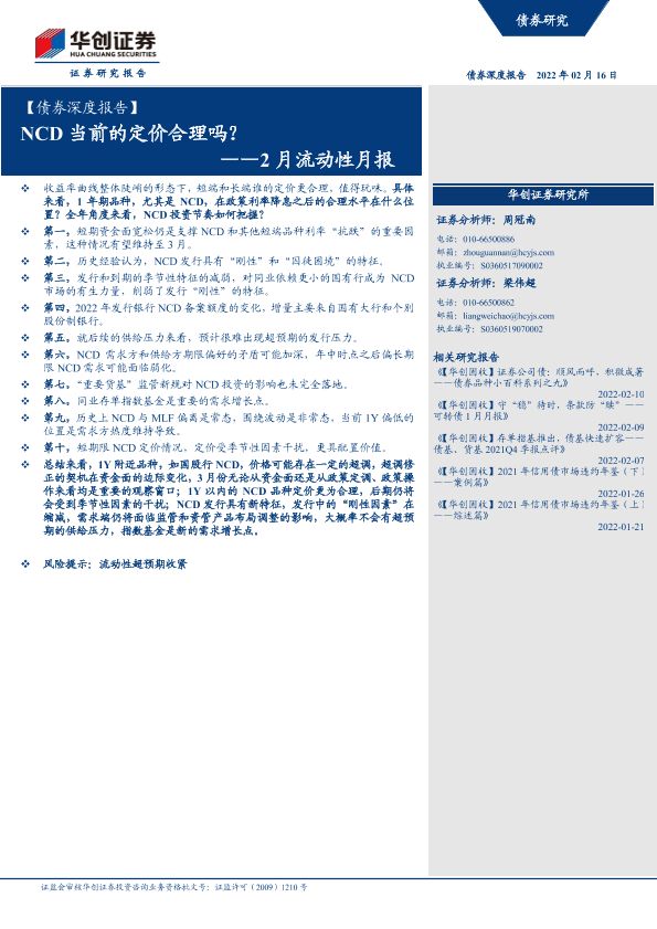 【华创证券】【20220216】2月流动性月报:NCD当前的定价合理吗?-28页