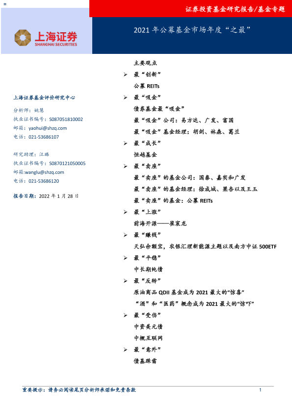 【上海证券】【20220128】2021年公募基金市场年度“之最”-21页