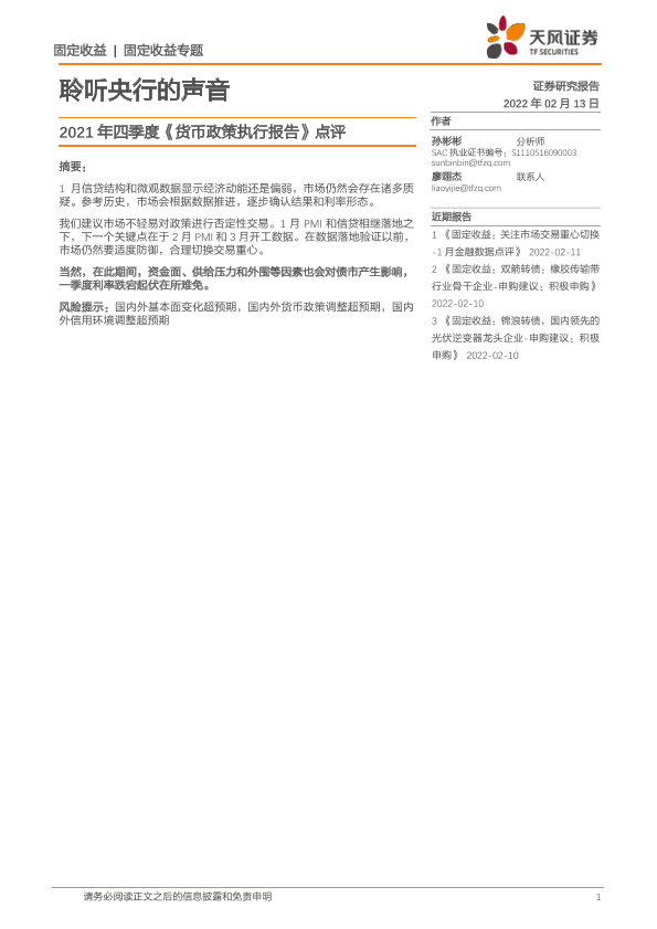 【天风证券】【20220213】2021年四季度《货币政策执行报告》点评:聆听央行的声音-33页