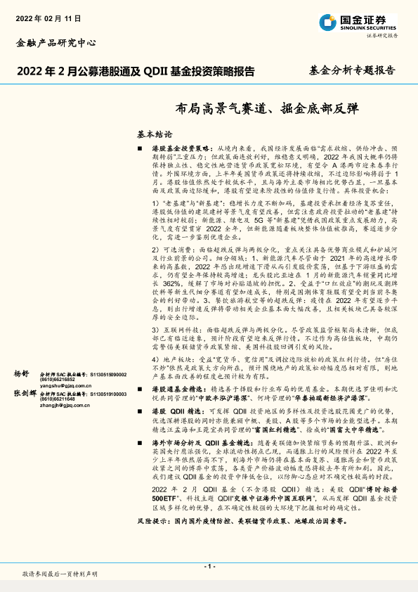 【国金证券】【20220211】2022年2月公募港股通及QDII基金投资策略报告:布局高景气赛道、掘金底部反弹-32页