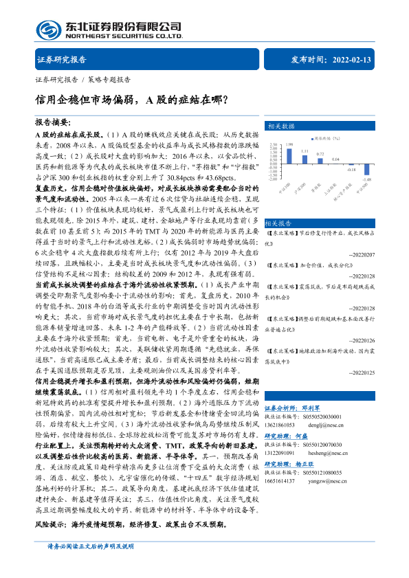【东北证券】【20220213】策略专题报告:信用企稳但市场偏弱,A股的症结在哪?-34页