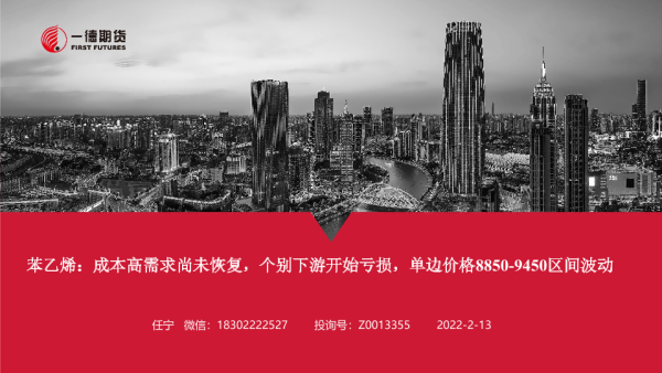 【一德期货】【20220213】苯乙烯:成本高需求尚未恢复,个别下游开始亏损,单边价格8850-9450区间波动-16页