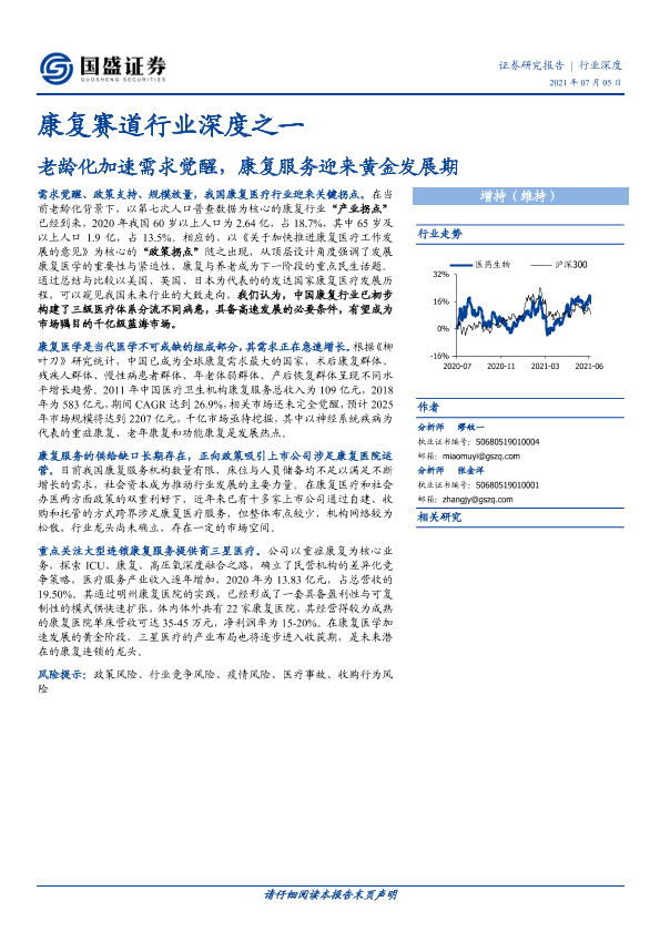 【国盛证券】【20210705】康复赛道行业深度之一:老龄化加速需求觉醒,康复服务迎来黄金发展期-37页