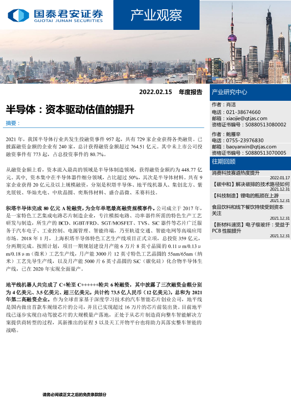 【国泰君安证券】【20220215】产业观察:半导体,资本驱动估值的提升-20页