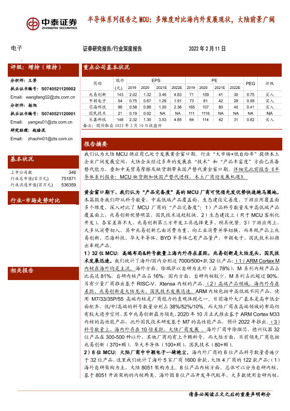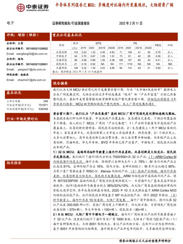 【中泰证券】【20220211】电子行业半导体系列报告之MCU:多维度对比海内外发展现状,大陆前景广阔-26页