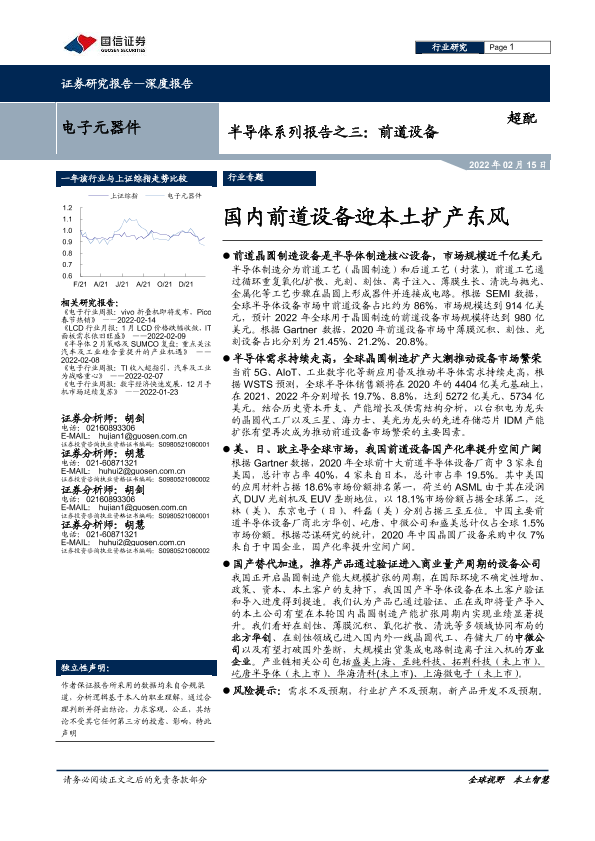【国信证券】【20220215】电子元器件行业半导体系列报告之三:前道设备,国内前道设备迎本土扩产东风-50页
