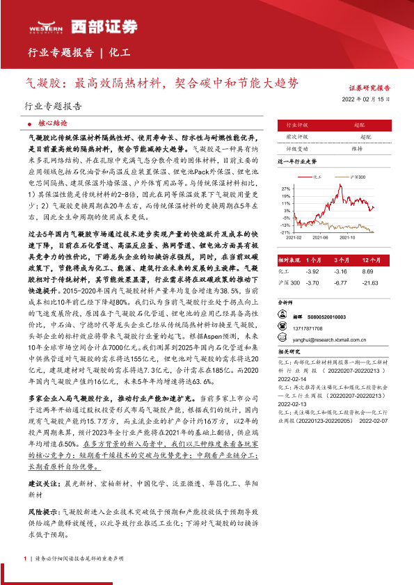【西部证券】【20220215】化工行业专题报告:气凝胶,最高效隔热材料,契合碳中和节能大趋势-20页