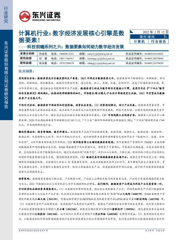 【东兴证券】【20220212】计算机行业科技前瞻系列之六:数据要素如何助力数字经济发展-26页