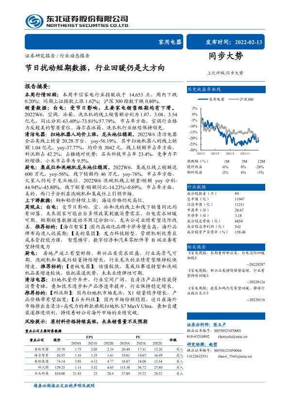 【东北证券】【20220213】家用电器行业动态报告:节日扰动短期数据,行业回暖仍是大方向-17页