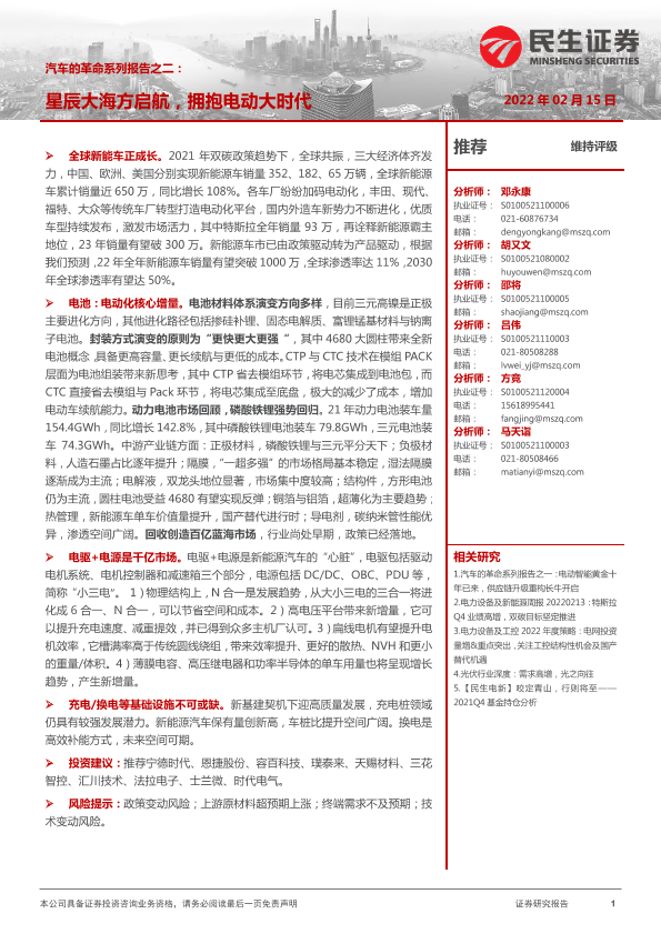 【民生证券】【20220215】汽车的革命系列报告之二:星辰大海方启航,拥抱电动大时代-122页