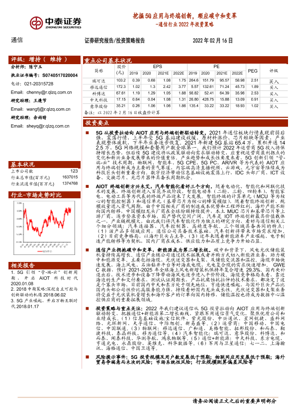 【中泰证券】【20220216】通信行业2022年投资策略:挖掘5G应用与终端创新,顺应碳中和变革-55页