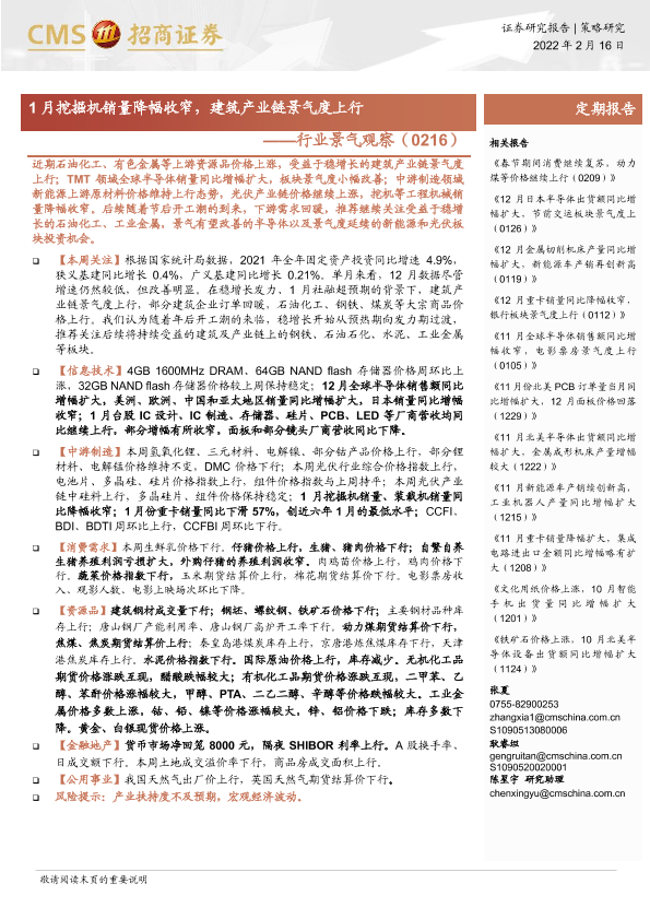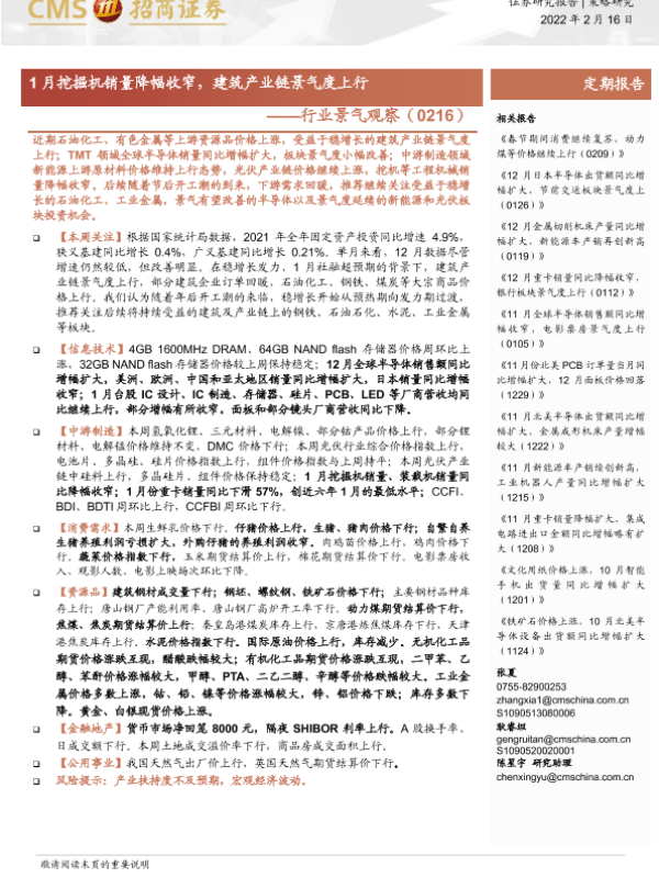 【海通证券】【20220216】行业景气观察(0216):1月挖掘机销量降幅收窄,建筑产业链景气度上-30页