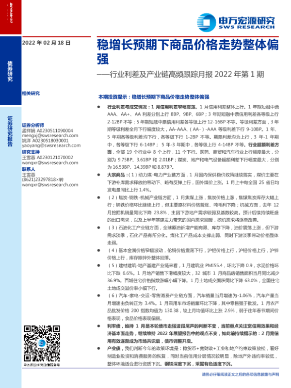 【申万宏源】【20220218】行业利差及产业链高频跟踪月报2022年第1期:稳增长预期下商品价格走势整体偏强-25页