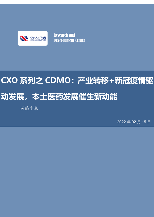 【信达证券】【20220215】医药生物行业:CXO系列之CDMO,产业转移+新冠疫情驱动发展,本土医药发展催生新动能-42页