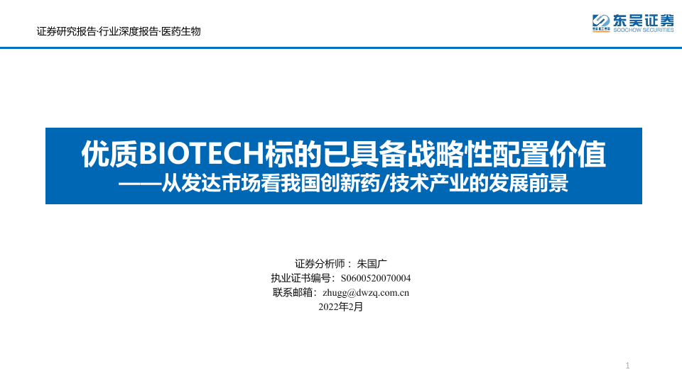 【东吴证券】【20220217】医药生物行业从发达市场看我国创新药技术产业的发展前景:优质BIOTECH标的已具备战略性配置价值-103页