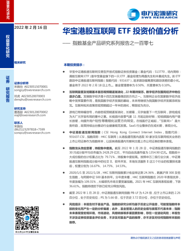 【申万宏源】【20220216】指数基金产品研究系列报告之一百零七:华宝港股互联网ETF投资价值分析-31页