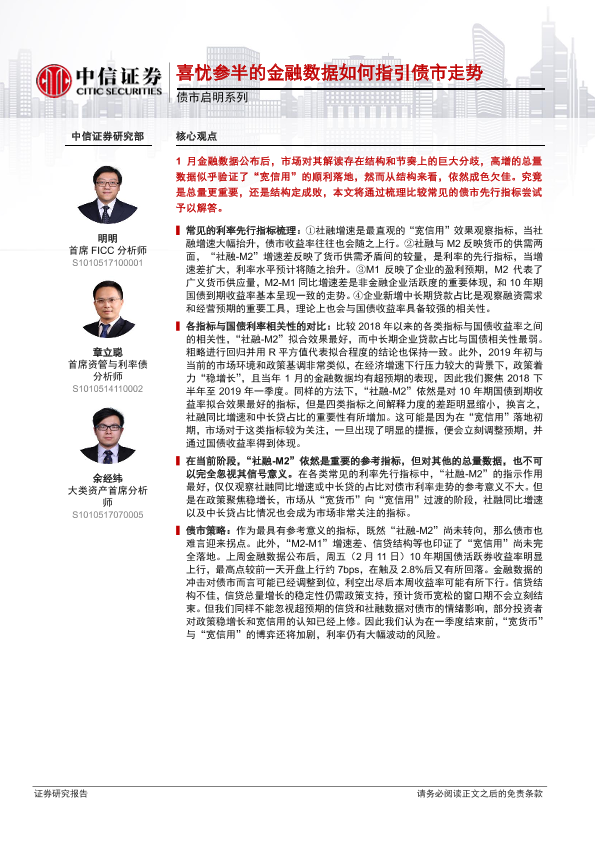 债市分析 利率先行指标 宽信用 社融-M2 金融数据