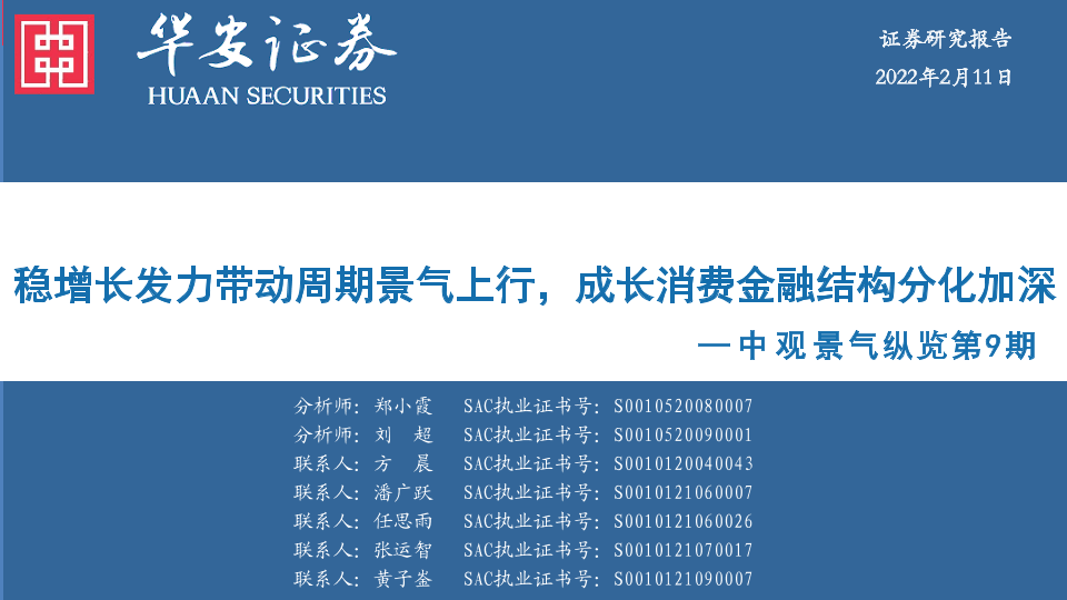 【华安证券】【20220211】中观景气纵览第9期:稳增长发力带动周期景气上行,成长消费金融结构分化加深-57页